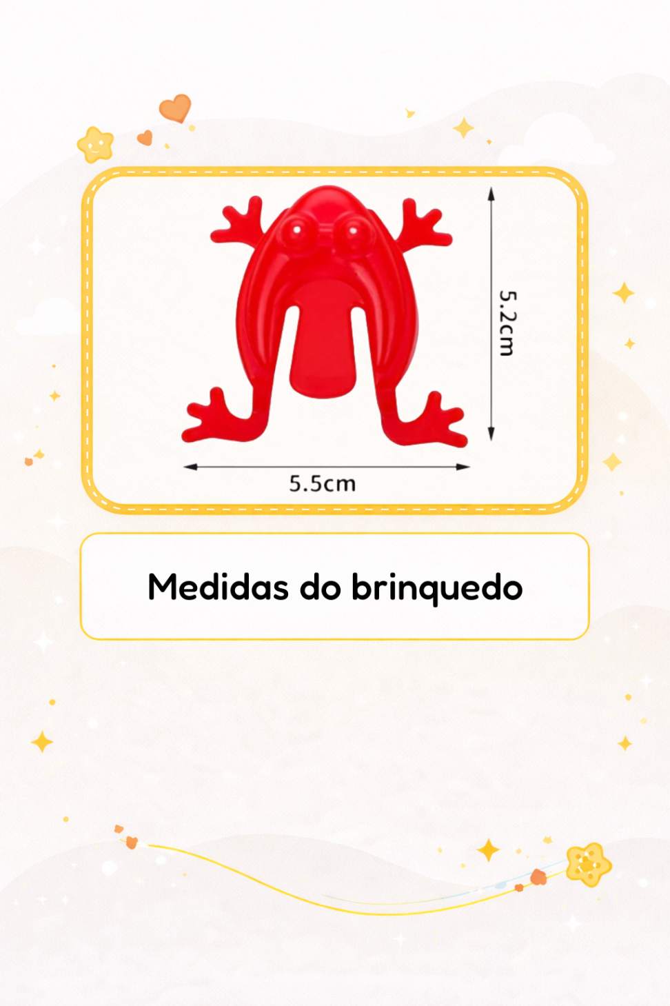 Com visual tradicional que remete às brincadeiras da infância, o sapo saltador é atemporal e desperta curiosidade e nostalgia, conquistando rapidamente a atenção das crianças.